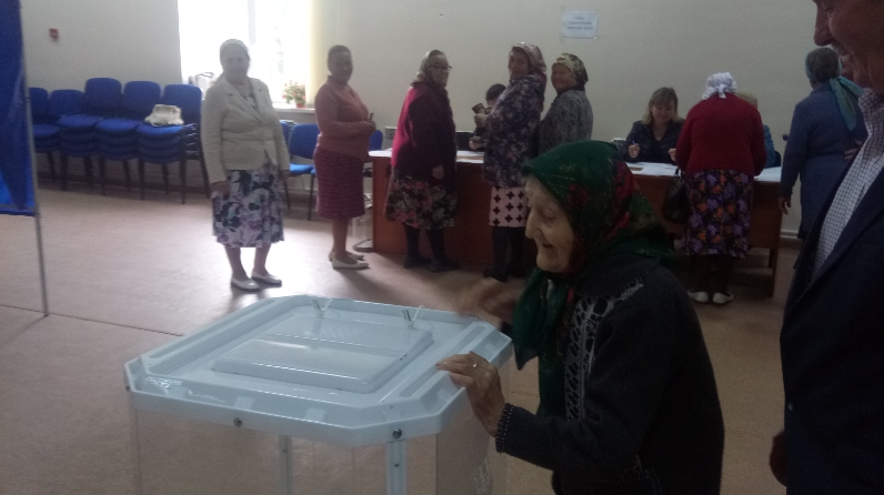 08.09.2019 Бердәм тавыш бирү көнендә 1602 нче сайлау участогына иң хөрмәтле һәм өлкән сайлаучы Иске Тәрбит авылында яшәүче Романова Елизавета Петровна килде.